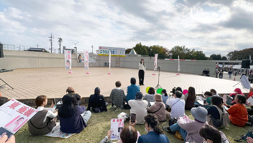 本日、東亜樹ミニライブが「2025こうなん産業フェスタ」の屋外ステージで行われた。