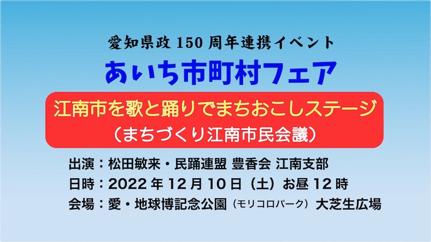 江南市を歌と踊りでまちおこしステージ 歌:松田敏来 振り付け:民踊連盟・豊香会・江南支部 令和4年12月10日