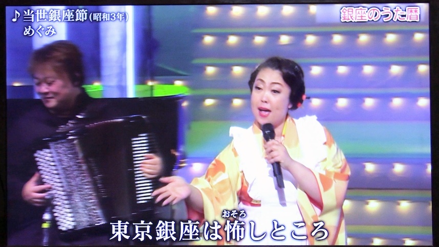歌唱曲は、昭和3年の銀座をテーマにした「当世銀座節」。
