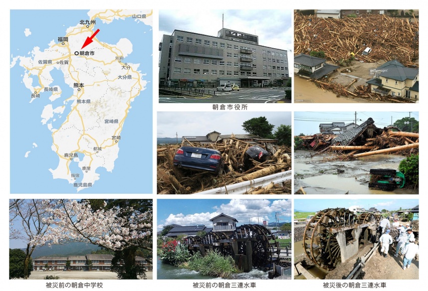 朝倉市は、福岡県の中南部に位置し、面積は、246.71km2、総人口は51,138人。隣接自治体は、久留米市、うきは市、嘉麻市、朝倉郡筑前町、東峰村、三井郡大刀洗町。現在、支援団体との連携を強化しながら、復興活動を展開している。