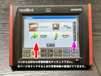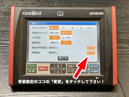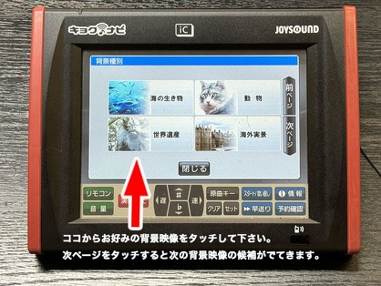 JOYSOUNDで有料楽曲配信で配信されている楽曲は、キョクナビ(端末装置)のオプションで背景映像を変えることができます。
