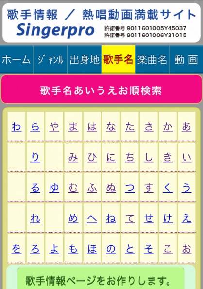 ジャンル、出身地、歌手名、楽曲名、動画掲載番号から情報ページを探すことができるようになります。