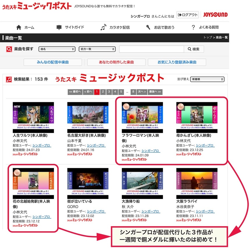 シンガープロが承ったJOYSOUND有料楽曲配信曲