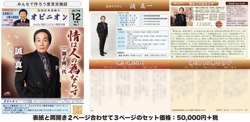 With that in mind, without permission, the next issue "Enkapro December issue" will be renamed to "Opinion December issue" and will be issued. The catchphrase is "Make an opinion exchange magazine with everyone". As usual, recruit manuscripts for a fee and do not limit to the enka singer about the cover, I would like people in various industries to declare the document.