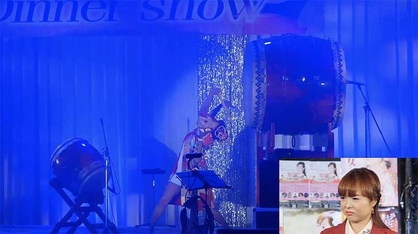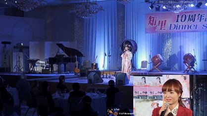 さらに驚かせたのは和太鼓を叩く知里であった。10周年の勝負曲「華ロック」のプロモーションビデオに出演している和太鼓奏者、西村史雄氏がステージに登場し、知里と共演。