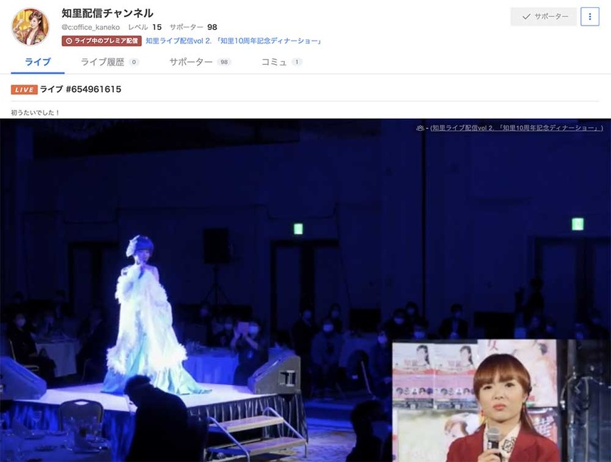 先月29日に行われた「知里10周年記念ディナーショー」を知里さんが、視聴者と一緒に振り返りながら、視聴者から次ぎから次へと寄せられるコメントを見ながら、生の声で、感謝の言葉やステージの裏話などを笑顔で語っていました。