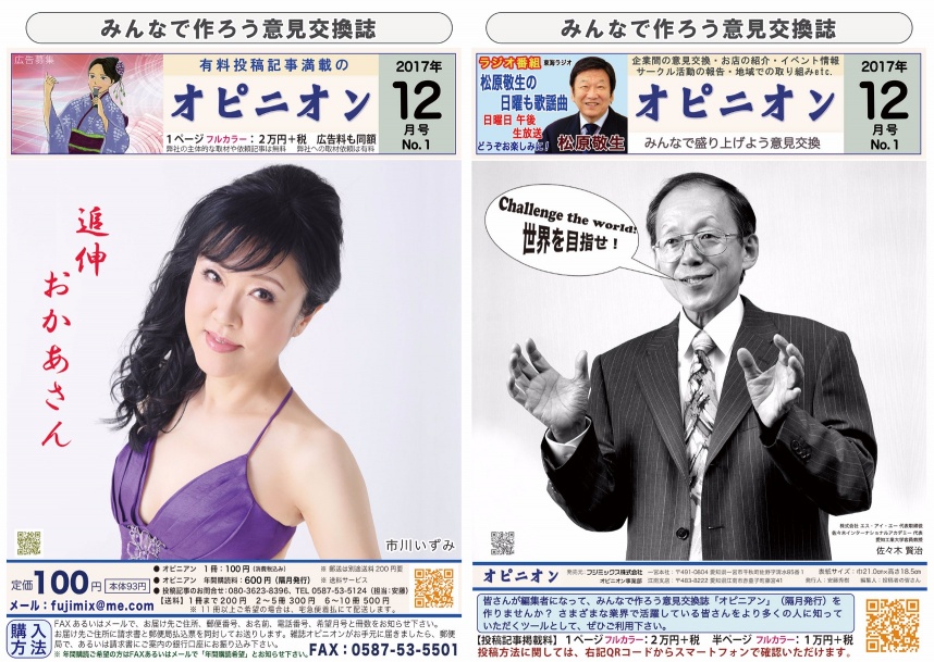 隔月誌オピニオン12月号は、2017年11月25日発売。全44ページ フルカラー