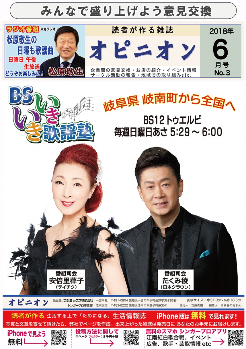 読者が作る雑誌オピニオンを手にされた方、「ここはこうしたら良い」とか「こういった記事を取り上げると良い」とかご意見があれば、お聞かせ下さい。オピニオンに「みんなの意見」と題してご案内したい思います。私も皆様のご意見に耳を傾けながら改善できる点は改善し、より良い雑誌に育てていきたいと思います。