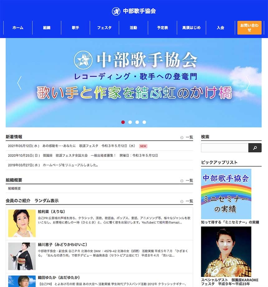 このたび、「中部歌手協会」のホームページを制作させていただきました。
