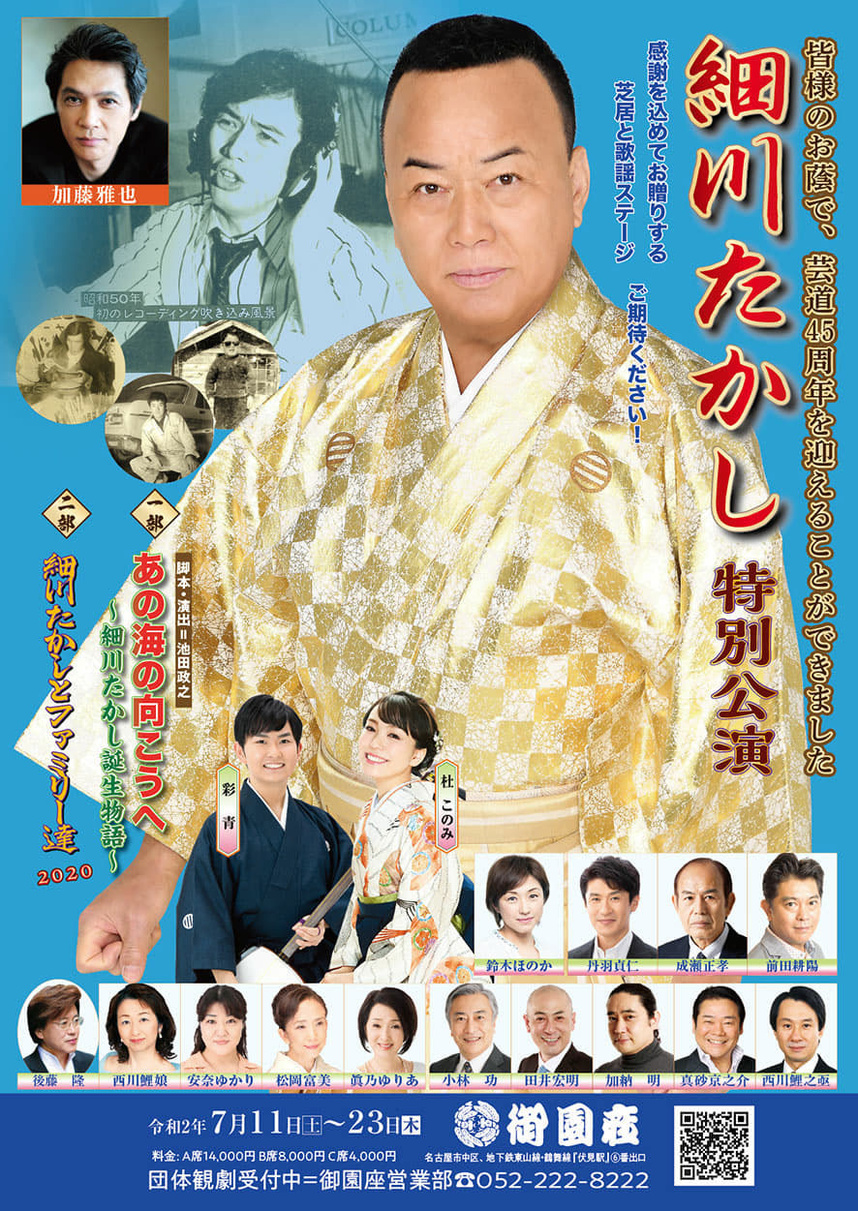 芸道45周年を迎えた細川たかしの特別公演が御園座で7月に開催されます。奮ってご参加下さい。