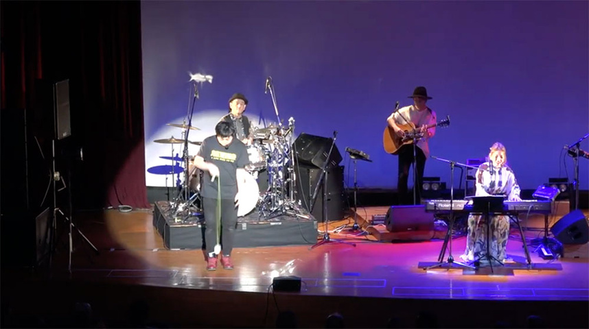 Dragon Boysの生演奏の元、自らもピアノ弾き語りで、amazing graceから初まり、CMソングメドレーなど数々の楽曲を熱唱。