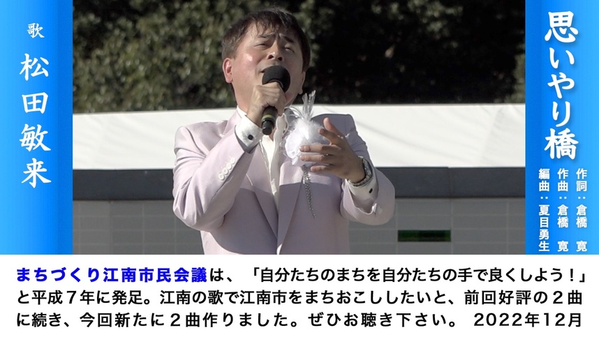 江南の歌でまちおこししたいと、前回好評の2曲に続き、今回新たに2曲作りました。ぜひお聴き下さい。