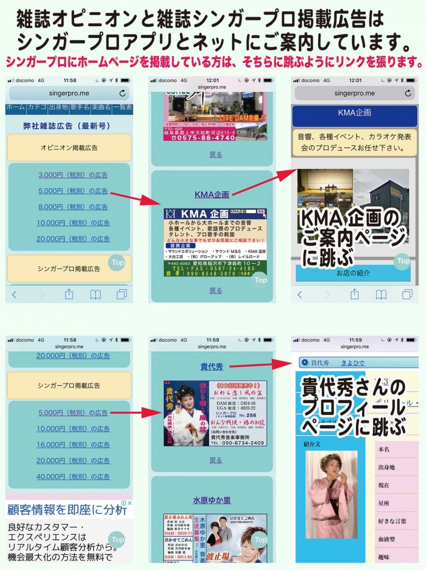 雑誌「シンガープロ」と「オピニオン」の広告はネットにも公開しています。