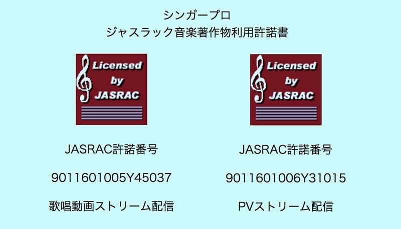 シンガープロでは添付の通り、インターネット動画掲載に関してジャスラック音楽著作物利用許諾の番号を取得しています。それに基づいて、今回の第3回江南紅白歌合戦の掲載動画は、個々の楽曲名、作品コード、作詞者名、作曲者名、編曲者名、歌唱者名を一覧表にしてJASRACに報告書を届けます。