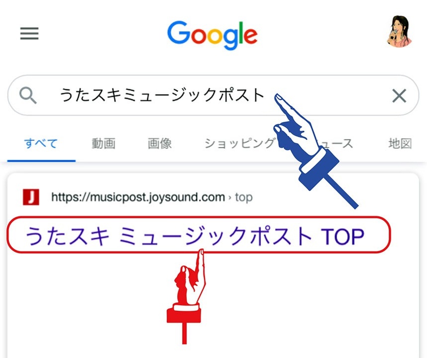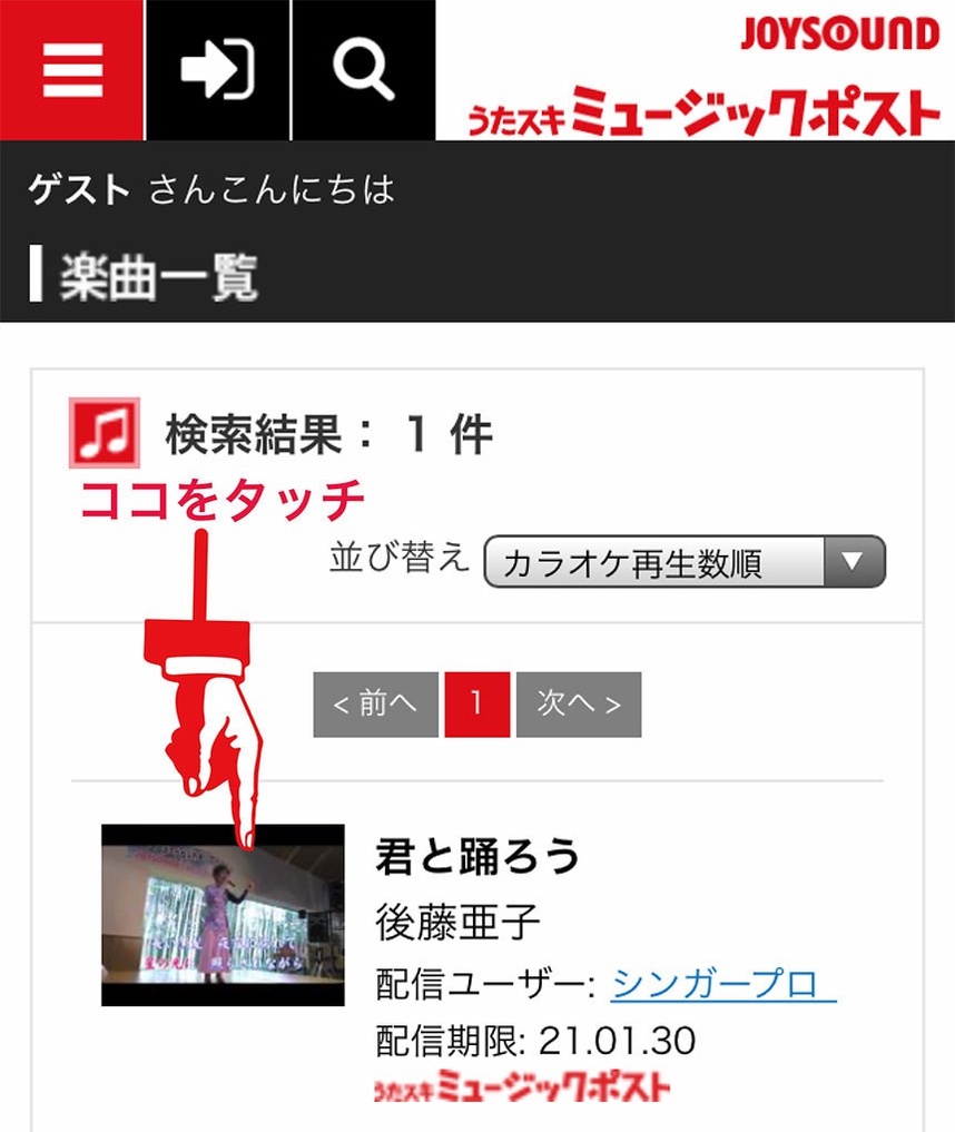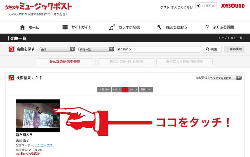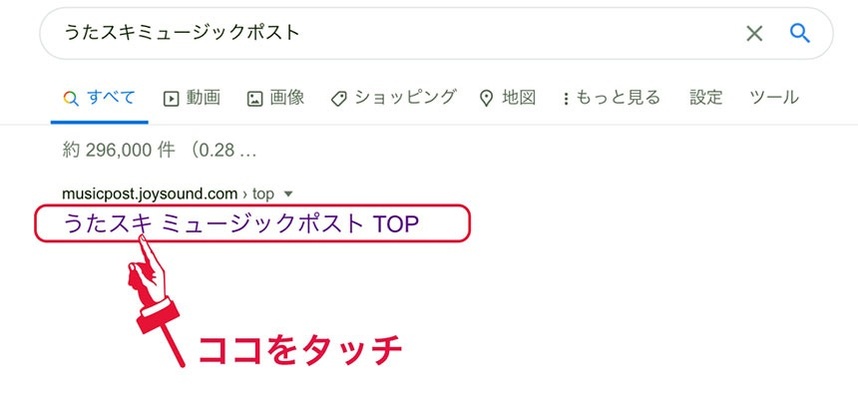 検索してヒットした「うたスキ ミュージックポスト TOP」のタイトル文をタッチして下さい。
