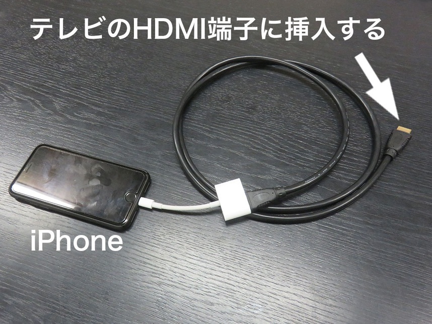 iPhoneとテレビをHDMIケーブルで接続。