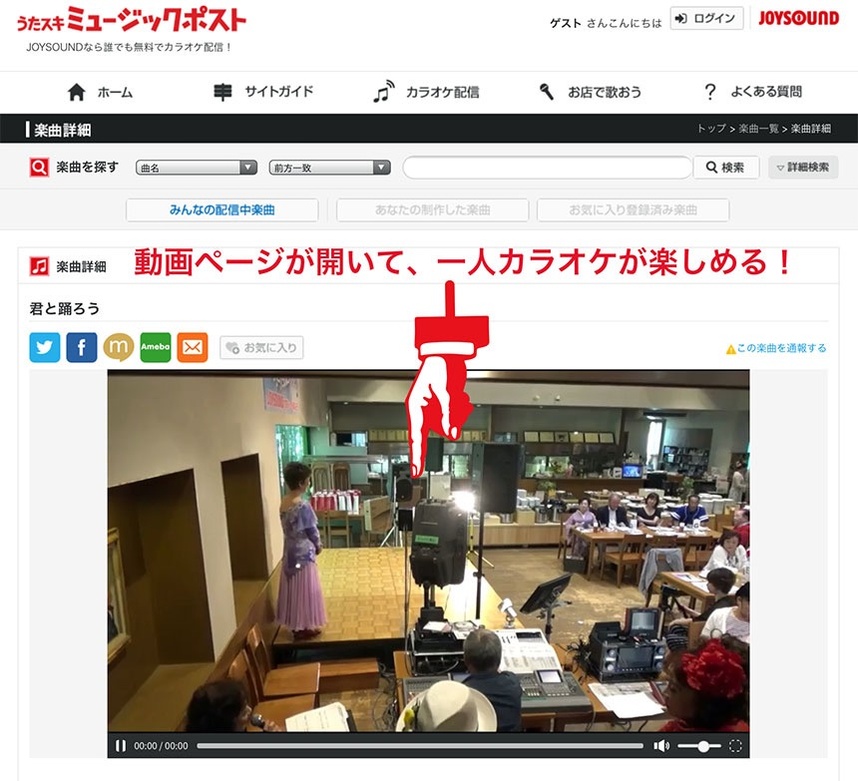 動画ページが開いて、一人カラオケが楽しめます。