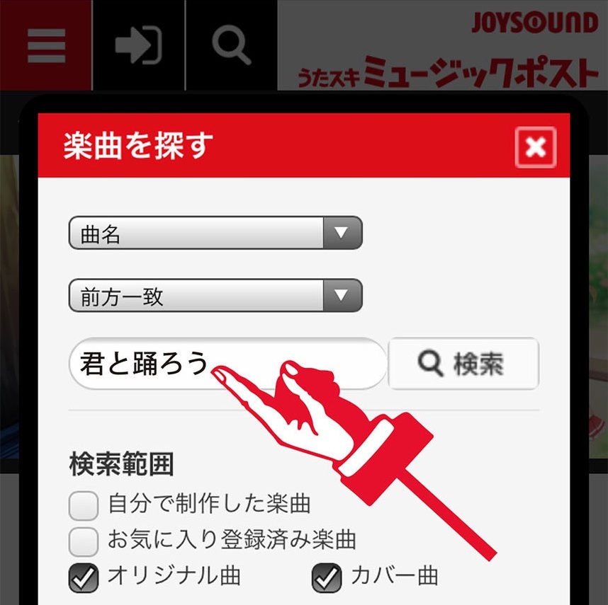 曲名を入力して検索ボタンをタッチして下さい。