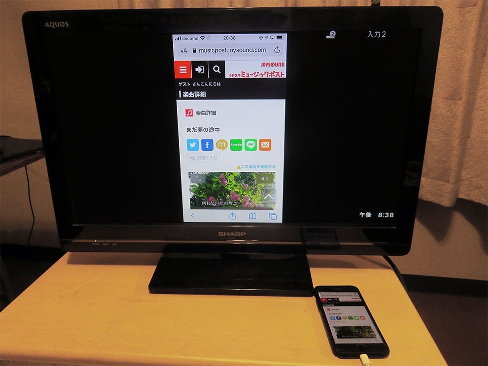 iPhoneの画面がテレビに映し出される。