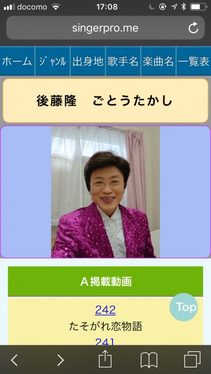 歌手名:後藤隆さんの情報ページをスマートフォン用に作り直しました。