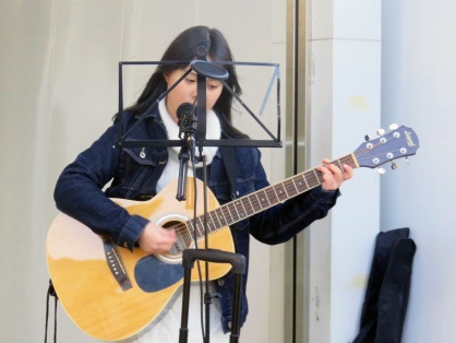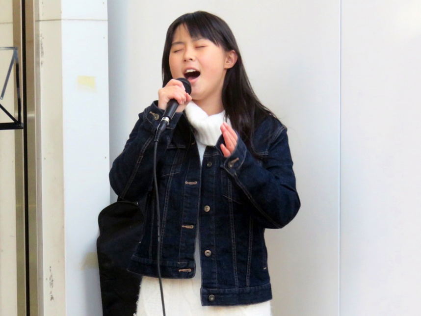 中学生の上田桃夏さんが名鉄江南駅で初の路上ライブ