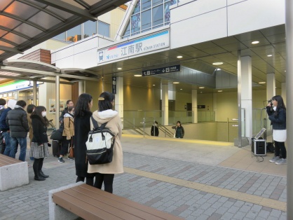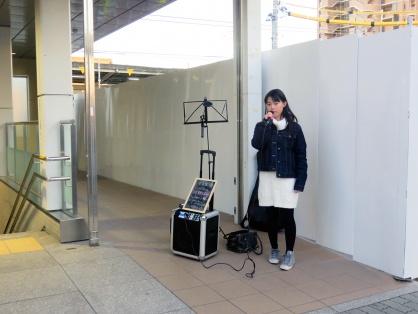 2018年12月24日16時、上田桃夏さんが名鉄江南駅で初の路上ライブ。