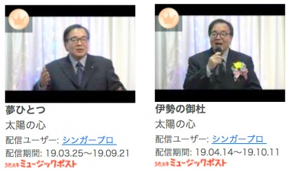 シンガープロが2019年3月25日に「うたスキ ミュージックポスト」に代行で配信した「夢ひとつ / 太陽の心」が16,115曲配信されている楽曲の中の8番目にランクインしました。