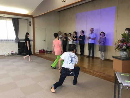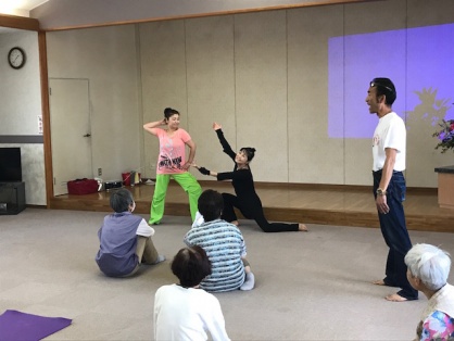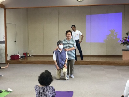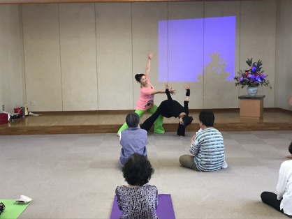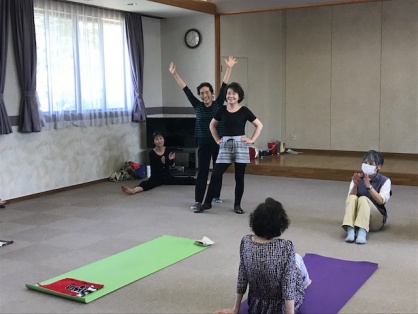 組立体操は、2人ペアになって、どちらかが先にがポーズを決め、2番目の人がそれに合わせてポーズを決める。インストラクターの先生は、格好良く見事にポーズを決め、最後は全員でポーズを決めた。(どういうポーズをとったら良いのか一生懸命に考えるので頭の体操になる。)