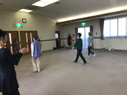 組立体操、タオル体操、モデル歩きなどいろいろな種類の体操を行った。