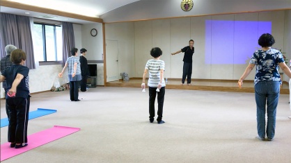 こんな感じで進行していく。気楽な気持ちで取り組めるのがシンガー歌謡体操の良いところ。