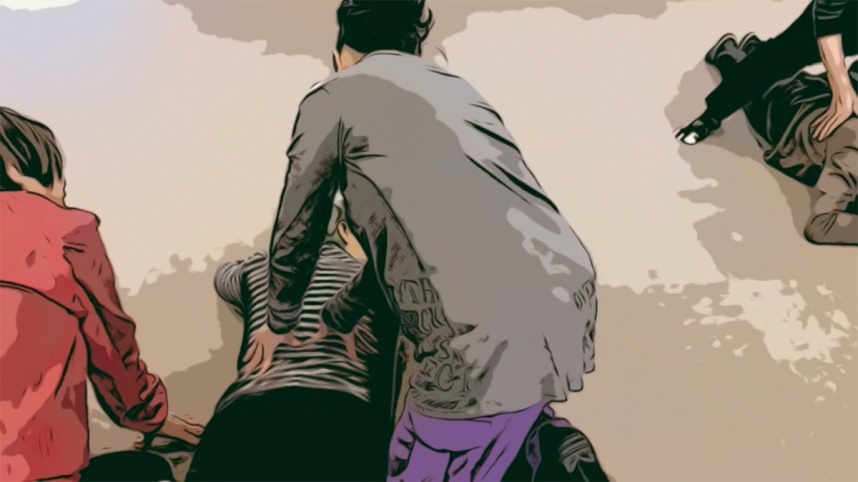 立って歩く人間にとって、腰背部は一番疲れの出やすい場所。パートナーにうつ伏せになってもらって、マッサージを始める。肩→背中→腰の順にゆっくりじっくり手のひらで押したり、さすったりしていく。神経の緊張がほぐれ、心が落ちついていくのがわかる。