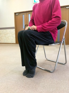 村川先生は、椅子に座って体操。
