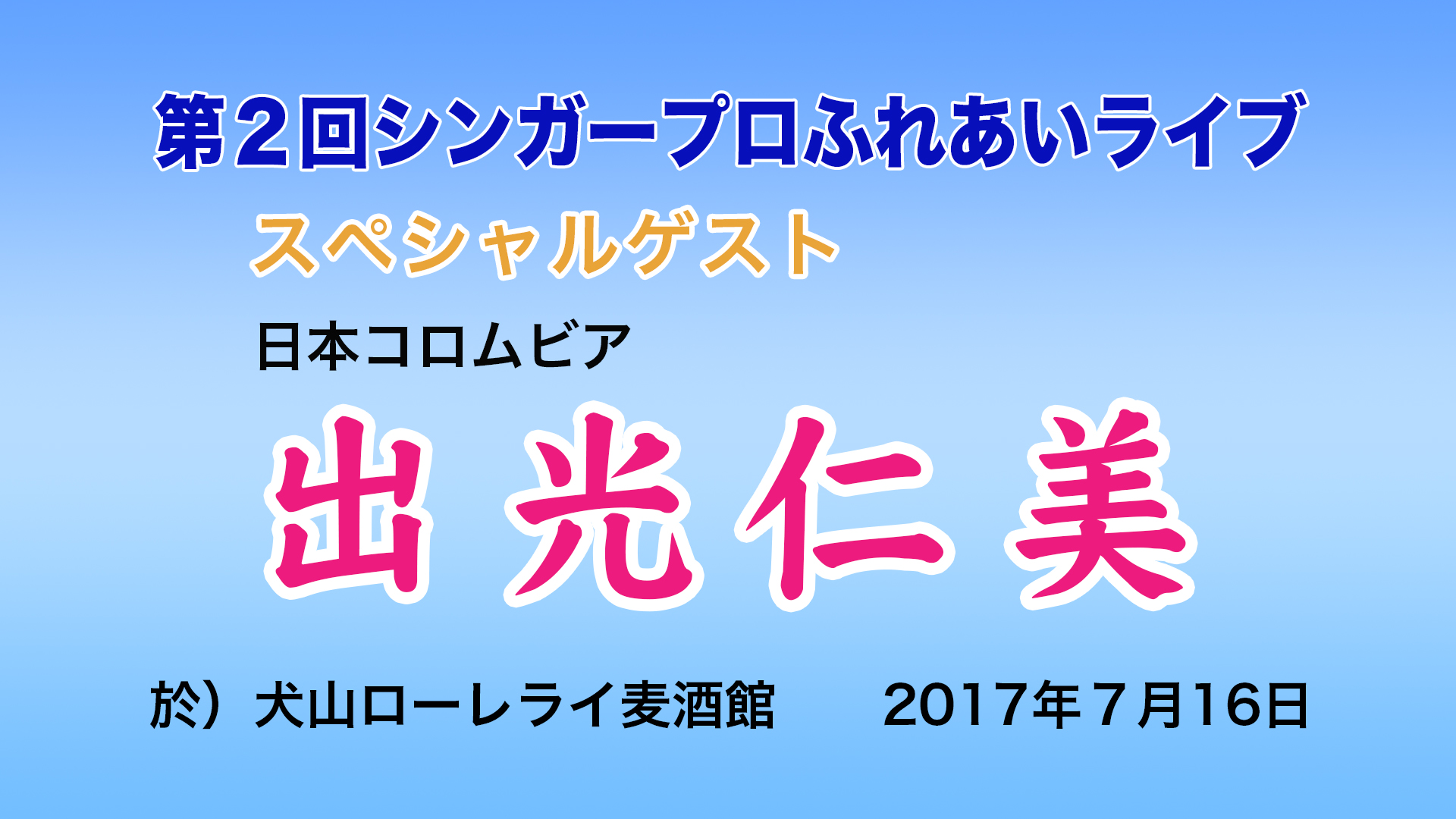 「第2回シンガープロふれあいライブ スペシャルゲスト:出光仁美」公開のお知らせ 2025年10月28日
